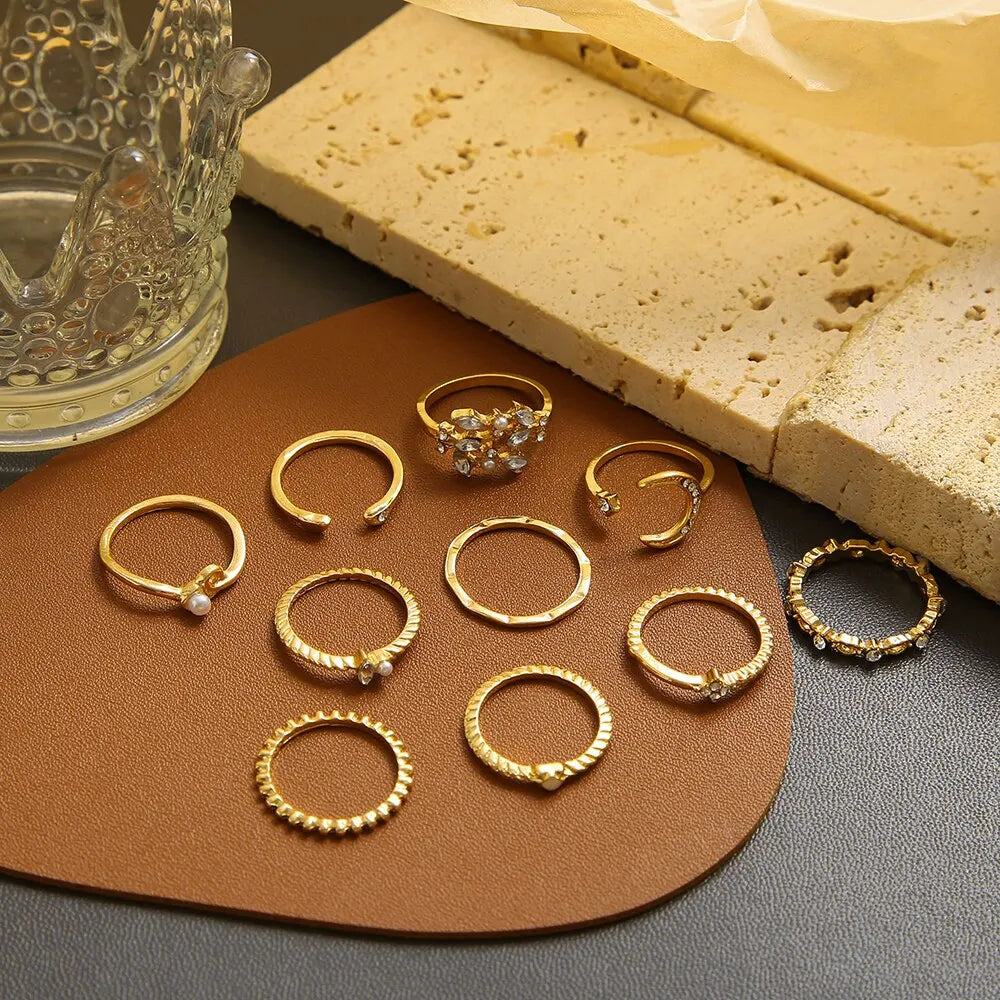 10Pcs Rings Suit For Women Gold-color Chain Ring Set Bohemian Style Coin Snake Moon Star Party Trend Gift Jewelry